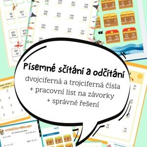 Zábavné a přehledné procvičování písemného sčítání a odčítání! Materiál obsahuje 5 pracovních listů různé obtížnosti –