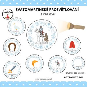 SVATOMARTINSKÉ PROSVĚTLOVÁNÍ PDF soubor obsahuje 6 stran: 18 kartiček s obrázky k prosvětlení Průměr kartičky je cca 9,5