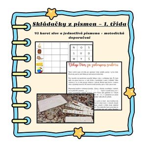 V souboru najdete 93 karet na deseti stranách s kartičkami písmen a metodická doporučení. Každá karta obsahuje obrázek a