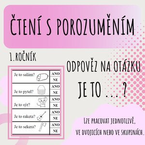 Materiál obsahuje 48 kartiček s otázkami na obrázek. Slouží jako zábavné procvičování čtení. Lze pracovat jednotlivě