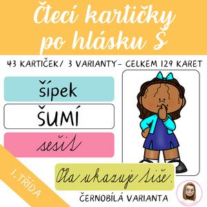 Čtecí kartičky po hlásku Š , které dětem pomohou jistě a hravě zvládnout první čtenářské pokroky. Soubor obsahuje celkem