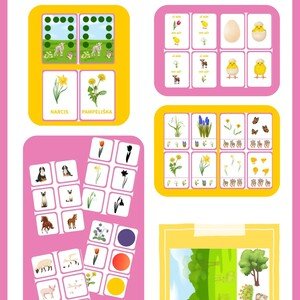 Hledání písmen tematicky zaměřené kartičky. Na každé kartičce je v horní části napsáno slovo s obrázkem. Děti mají za