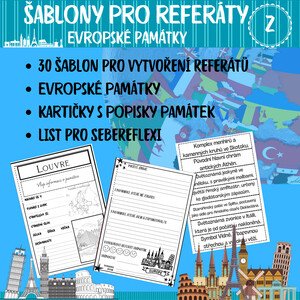 Tento komplexní materiál obsahuje 30 připravených šablon pro referáty a informační karty k nejznámějším evropským
