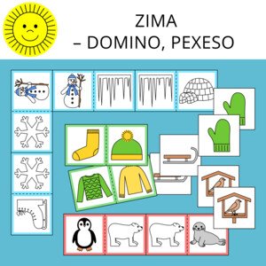 Materiál obsahuje čtyři strany s kartičkami domina (1 strana = 1 sada kartiček domina = 10 kartiček) a čtyři strany s