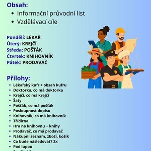 Povolání v MŠ, týdenní plán Obsah: - Informační průvodní list - Vzdělávací cíle Pondělí: LÉKAŘ Úterý: KREJČÍ Středa
