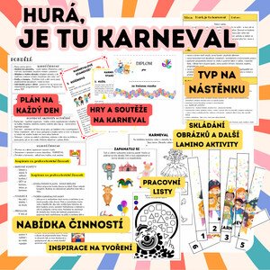 HURÁ JE TU KARNEVAL – UPGRADOVANÝ PDF MATERIÁL, KTERÝ MÁ CELKEM 60 stran plných zábavy, tvoření a radosti! VHODNÝ PRO