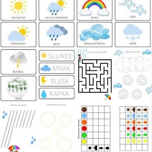 Soubor obsahuje: demonstrační obrázky počasí (10 obrázků na A5) obtahování slov bludiště 3 grafomotorické listy - rovná