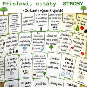 Materiál se skládá z 6 A4 stran – 24 karet velikosti A6. Ručně malované obrázky. K výzdobě i k výuce.