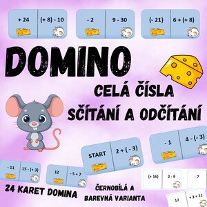 DOMINO - sčítání a odčítání celých čísel 24 karet domina sčítání a odčítání celých čísel stačí vytisknout a nastříhat