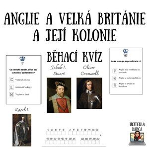 Materiál obsahuje 26 kvízových karet na zopakování učiva o Anglii za vlády Jakuba I. Stuarta či Karla I. Dále pak o