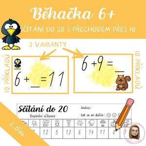Zábavná běhačka pro prvňáky a druháky, díky které si děti procvičí sčítání s přechodem přes desítku (typ 7+) hravou a