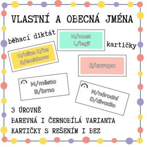 Pomůcka, která je vhodná pro žáky 1. stupně ZŠ při procvičování pravopisu vlastních a obecných jmen. Materiál obsahuje