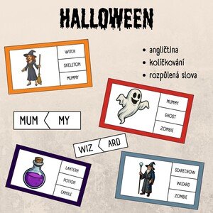 Zábavné aktivity na procvičení anglických slovíček na téma Halloween. Vhodné jako samostatná práce. Soubor obsahuje