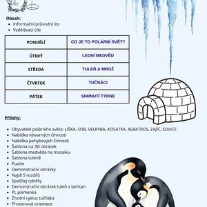 ZA POLÁRNÍM KRUHEM, týdenní plán v MŠ Obsah: Informační průvodní list Vzdělávací cíle PONDĚLÍ: CO JE TO POLÁRNÍ SVĚT