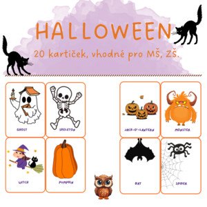 Obsahuje tematická slovíčka jako duch, čarodějnice, dýně či kostlivec – ideální pro rozšíření slovní zásoby, jazykové