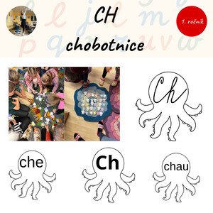 Nové písmenko a to je písmenko CH. Materiál obsahuje: velké chobotnice s písmenem CH malé chobotnice se slabikami →