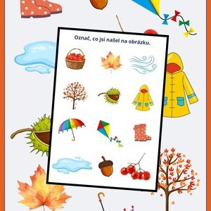 Podzimní plotovka pro zpestření cesty do školky. Obsahuje 12 pracovních listů, kde si děti procvičí prostorovou