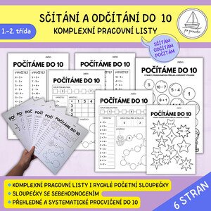 Materiál nabízí přehledné a strukturované procvičování sčítání a odčítání do 10. Využijete ho při běžné výuce, opakování
