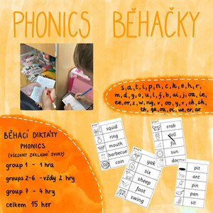 V dokumentu najdete 15 sad “běhaček” se slovy a obrázky rozdělenými podle 7 skupin, které se učíme v rámci metody výuky