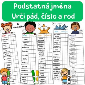 30 sloupečků ve dvou variantách - barevné a černobílé. Děti si na sloupečcích procvičí podstatná jména a určování jejich