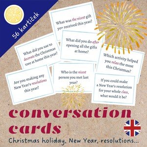 ❄️Soubor anglických konverzačních kartiček určených k diskuzi po návratu z vánočních prázdnin. Otázky děti přimějí