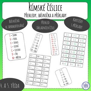 Materiál obsahuje básničku k zapamatování po sobě jdoucích římských čísel, přehled základních čísel a příklady k převodu