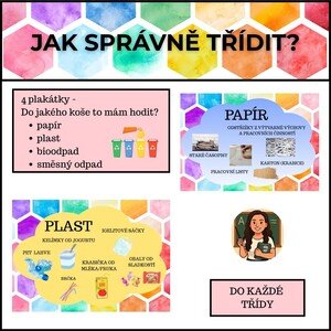 Tento soubor obsahuje 4 plakátky, které si přilepíte nebo přiděláte ke košům, aby děti věděly, jak správně třídit (co