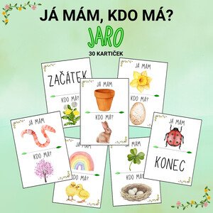 Já mám, kdo má – JARO 🌷 Soubor obsahuje 30 kartiček s jarní tematikou. Hra rozvíjí pozornost, postřeh, slovní zásobu i