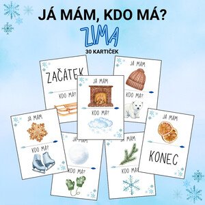 Já mám, kdo má – ZIMA 🍁 Soubor obsahuje 30 kartiček se zimní tematikou. Hra rozvíjí pozornost, postřeh, slovní zásobu i
