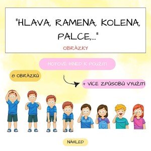 Popis: Obrázkové kartičky s částmi těla navazují na známou píseň Hlava, ramena, kolena a palce a umožňují dětem učit se