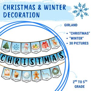 Krásná, vánočně laděná dekorace do třídy, která zároveň žákům připomíná slovní zásobu na téma Vánoce 🎄 a zima ❄️
