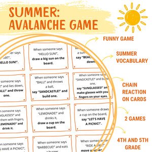 Ideální aktivita do posledních hodin angličtiny před prázdninami! Zábavná hra na téma léto, kde každá kartička s pokynem