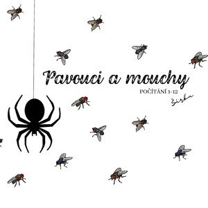 12 černobílých karet A5 s pavučinou a pavoukem s číslicí označující počet much 1 stránka s šesti různými obrázky much 16
