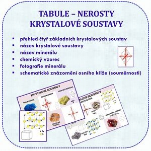 Materiál názorně představuje základní krystalové soustavy nerostů. Jsou v něm zobrazeny typické minerály přiřazené ke