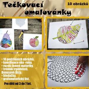 Tečkovací podzimní omalovánky Vatovou tyčinkou a vodovkami/temperami vyťukávejte kroužky na obrázku. Poté si děti mohou