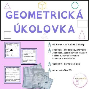 Materiál Geometrická úkolovka se zaměřuje na procvičování či opakování geometrického učiva. K dispozici je 60 karet