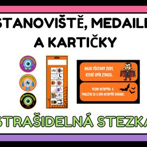 Strašidelná stezka pro děti obsahuje 12 stanovišť. Materiál obsahuje také podrobný popis jednotlivých stanovišť