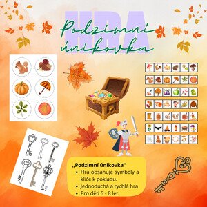 PODZIMNÍ ÚNIKOVÁ HRA Co vše obsahuje: ✅ 8 stránek A4 se symboly. ✅ 3 stránky A4 s klíči. ✅ Úvodní dopis a pravidla hry