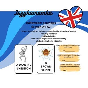 Různorodé aktivity na seznámení se se svátkem Día de muertos: kartičky, domino, pracovní listy - vybarvovaní dle popisu