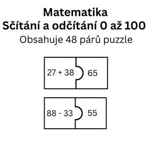Puzzle sčítání a odčítání do sta – 48 párů 🧩 Zábavná a jednoduchá hra, která dětem pomáhá procvičit sčítání a odčítání