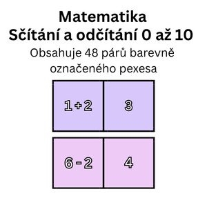 Pexeso sčítání a odčítání do deseti – 48 párů 🧠 Zábavná a barevná hra, která dětem pomáhá procvičit sčítání a odčítání