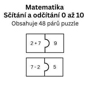 Puzzle sčítání a odčítání do deseti – 48 párů 🧩 Zábavná a jednoduchá hra, která dětem pomáhá procvičit sčítání a