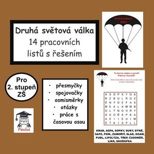 Pracovní listy s názvem Druhá světová válka obsahují úvodní stránku, 14 pracovních listů a řešení pro učitele. Listy