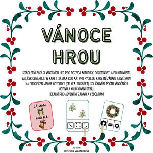 🎄 Vánoční herní trojboj (36 karet) Kompletní balíček 3 vánočních aktivit, které procvičí bystrost, pohotovost a jemnou