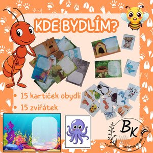 Hravé kartičky „Kde bydlím?“ pomáhají dětem poznávat zvířátka a jejich domovy. Úkolem dětí je přiřadit zvíře k místu