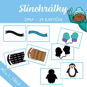 24 kartiček s obrázky a jejich stíny, ideální pro MŠ a 1. stupeň. Děti hledají dvojice, hrají pexeso a rozvíjejí zrakové