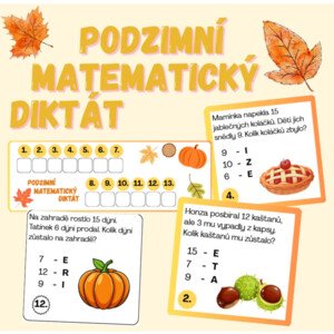 Následující materiál obsahuje 24 černobílých kartiček s podzimními algebrogramy. Algebrogramy jsou ve třech různých