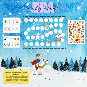 DESKOVÁ ROZŠÍŘENÁ HRA - SVATÝ MARTIN Hru vytiskněte, kartičky oboustranně. Pro delší výdrž zalaminujte. Co vše obsahuje