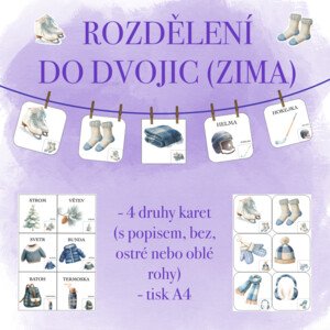 Výuková hra „Já mám, kdo má?“ na téma Zima. Obsahuje 28 kartiček v české i anglické verzi. Vhodná do MŠ, ŠD a 1. stupně
