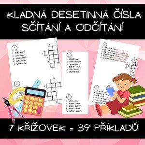 Sčítání a odčítání desetinných čísel s malou kontrolou. Materiál obsahuje 39 příkladů, ve kterých se správné některé